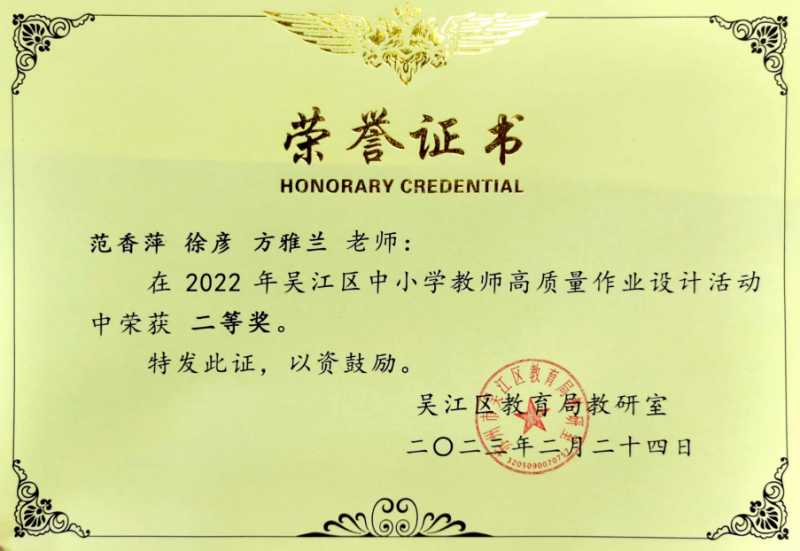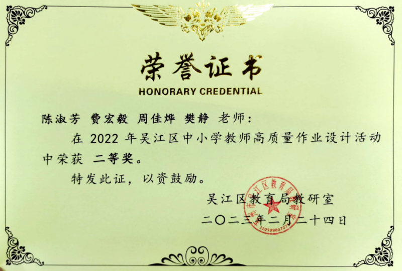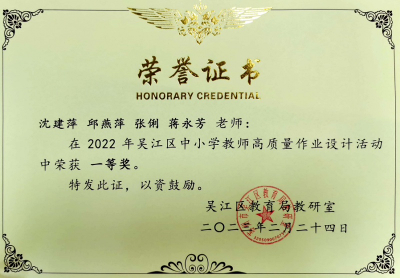 活动中,教师们设计出一份份创新性的作业,荣获区级一等奖、二等奖、三等奖的好成绩。