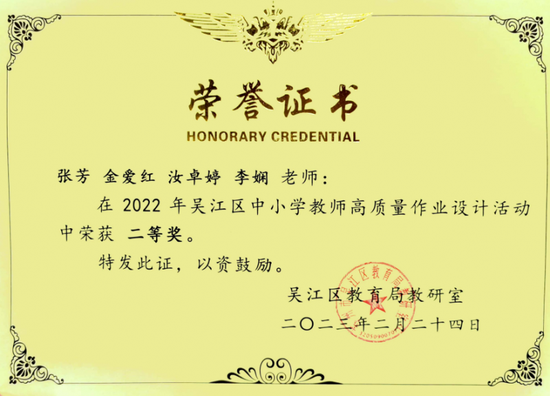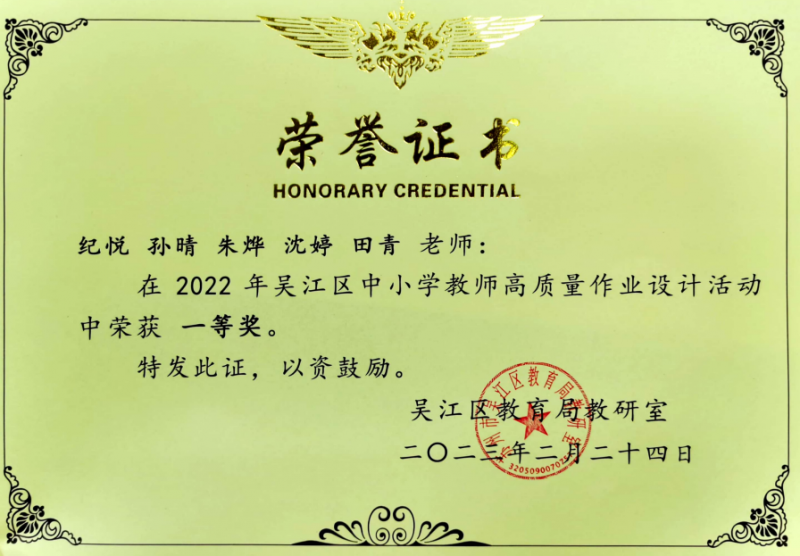 喜讯:越秀校区在吴江区高质量作业设计中获奖