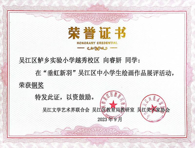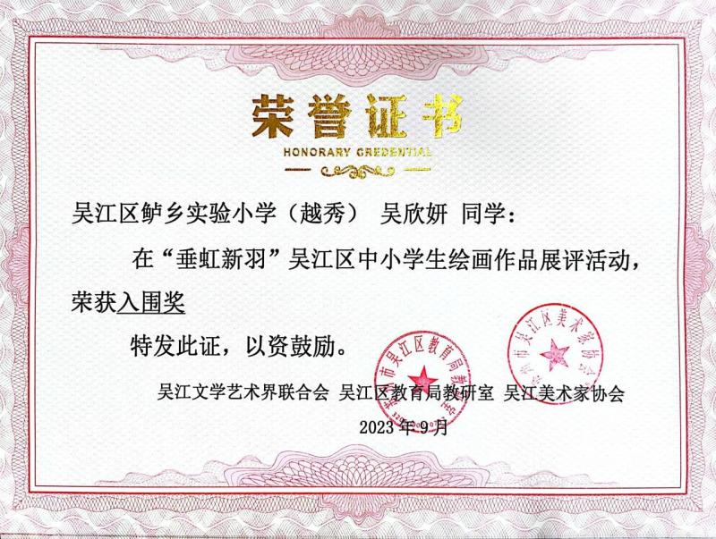 喜讯:越秀校区在2023年“垂虹新羽”吴江区中小学绘画作品展评活动中获奖(六)